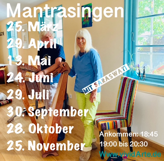So erleben wir die Fülle und Feier des Lebens, sobald wir unsere oft belastenden Gedanken auf ganz natürliche Art und Weise beim Singen loslassen. Gabi und Herbert, das Duo Saraswati, singen und klingen seit ca 27 Jahren miteinander. Da sie nicht nur Mantren indischen Ursprungs singen, sondern auch Sufi-Lieder und Lieder aus unterschiedlichen Kulturen und Religionen, haben sie ihr „Programm“ SONGS OF JOY genannt.